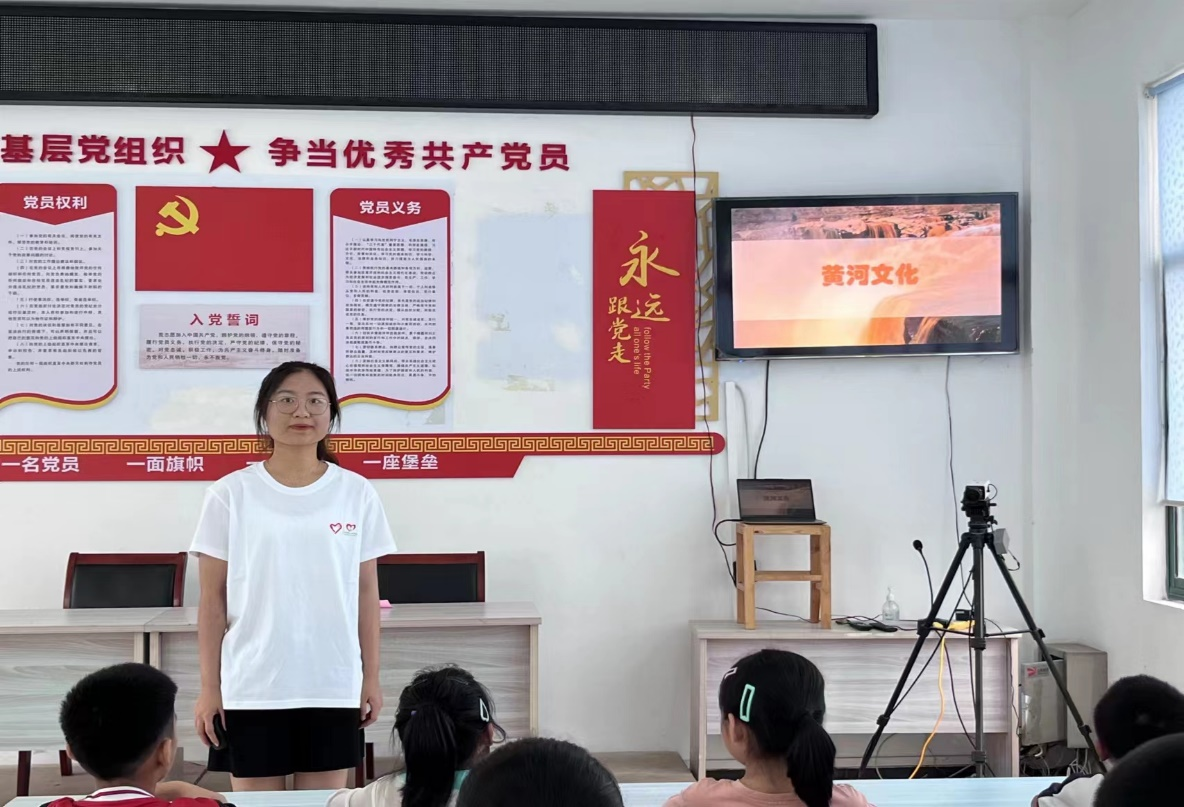 团队成员水文与水资源工程专业2022级2班的石宸熙同学来到日照市岚山区向社区小朋友们宣讲黄河文化。她给小朋友们讲解了黄河的地理位置、流经地区、流域面积、形成过程等基础知识,并带领小朋友们观看了关于黄河的纪录片。在介绍了黄河流域四大优秀传统文化,宣传了忧国忧民的黄河精神后,她鼓励小朋友们勇于探索、敬畏自然,呼吁他们用自己的实际行动参与到保护弘扬黄河文化中去,为美化家园、助力黄河流域生态文明贡献自己的力量。