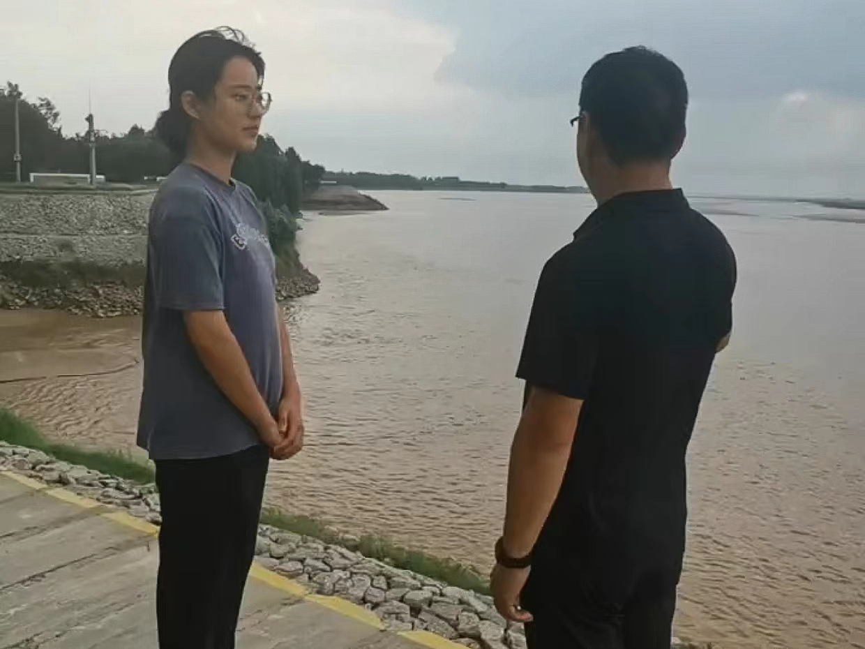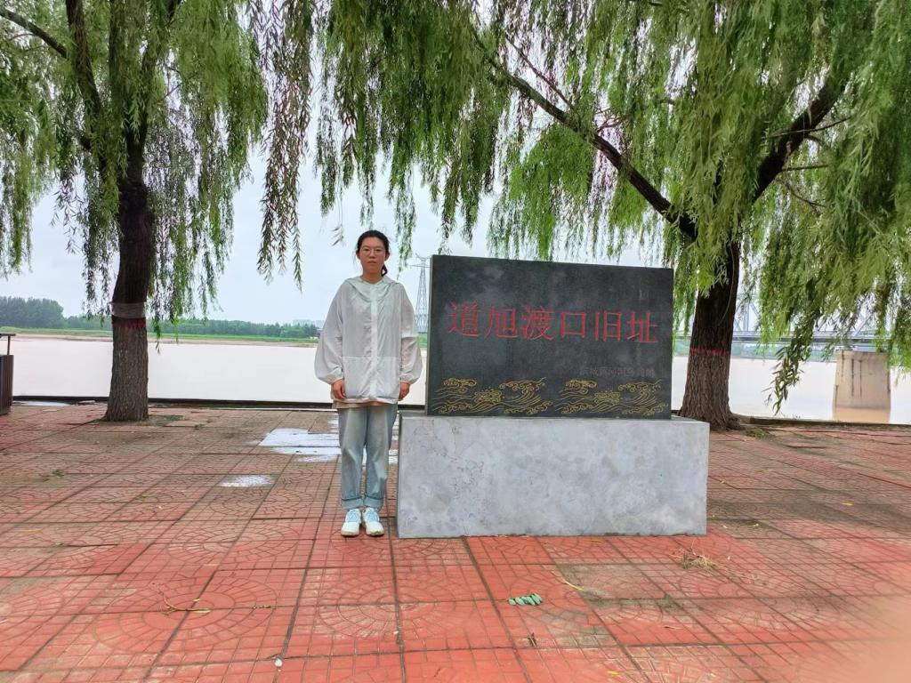 调研团成员水文与水资源工程2022级2班的张旖柔同学来到黄河流经地——菏泽市牡丹区实地调研黄河两岸生态环境。她向当地工作人员请教了目前黄河保护的相关措施,学习了“一园两带多廊道”的生态保护空间布局,并通过查看黄河河口防洪形势图,进一步加深保护黄河刻不容缓的意识。