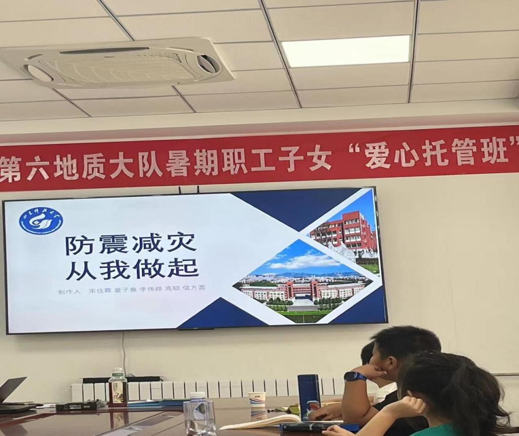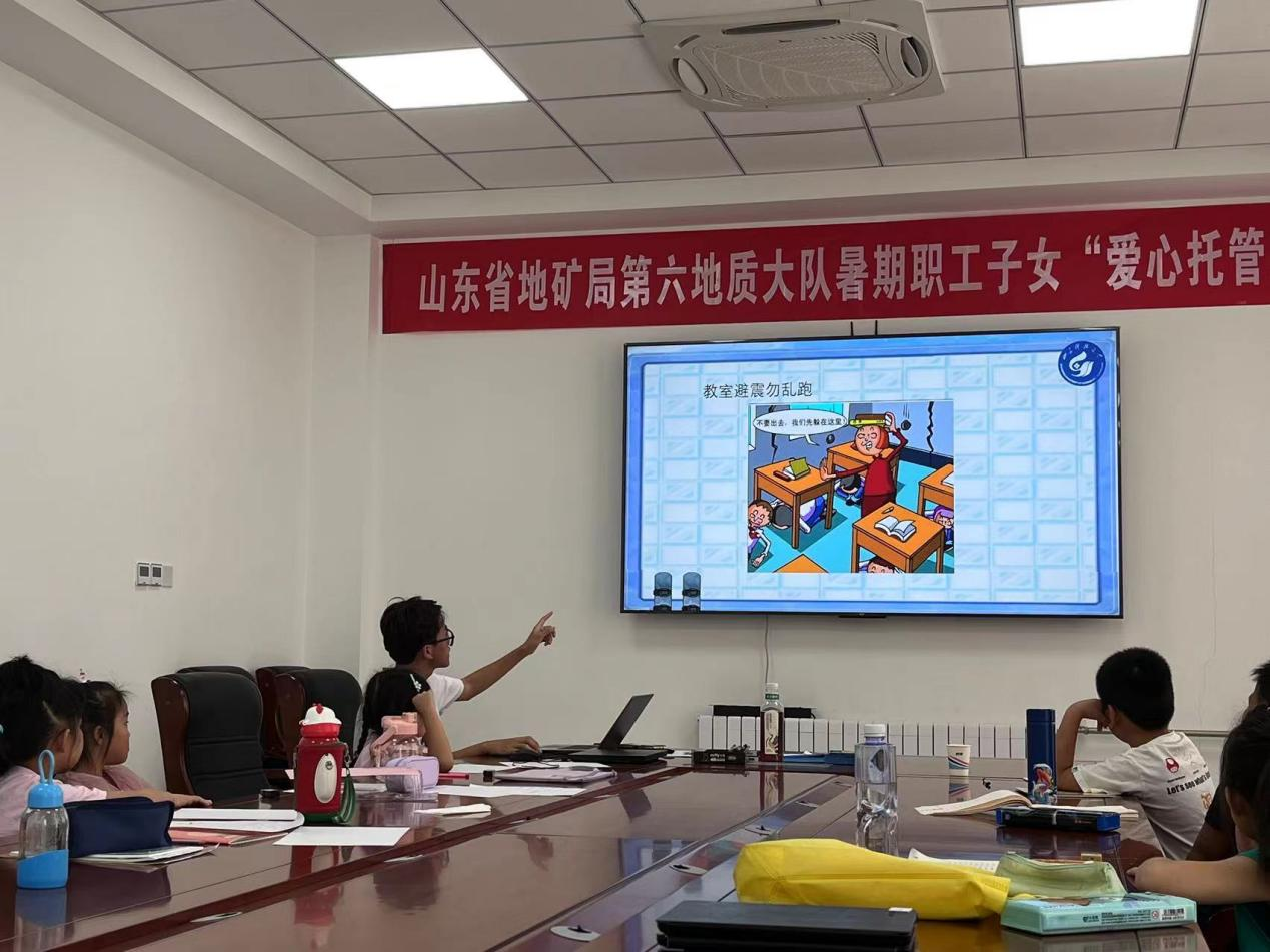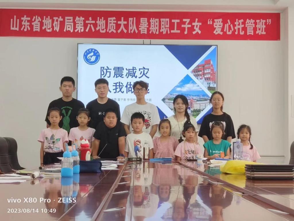 学习地质知识,不仅仅是为了更好地利用自然资源造福人类,更要学会如何正确的面对自然灾害。为广泛宣传和普及灾害知识,全面提高人名群众的风险防范意识和避灾自救能力,团队成员组建宣讲团,志愿为山东省地矿局第六地质大队暑期职工子女“爱心托管班”讲课,为小朋友们普及防灾减灾知识。小朋友们学习了有关生命安全的基本知识,掌握了自救、互救的技巧,降低了对灾害风险来临的恐惧心理,提高了防灾减灾的意识以和应急处置能力。