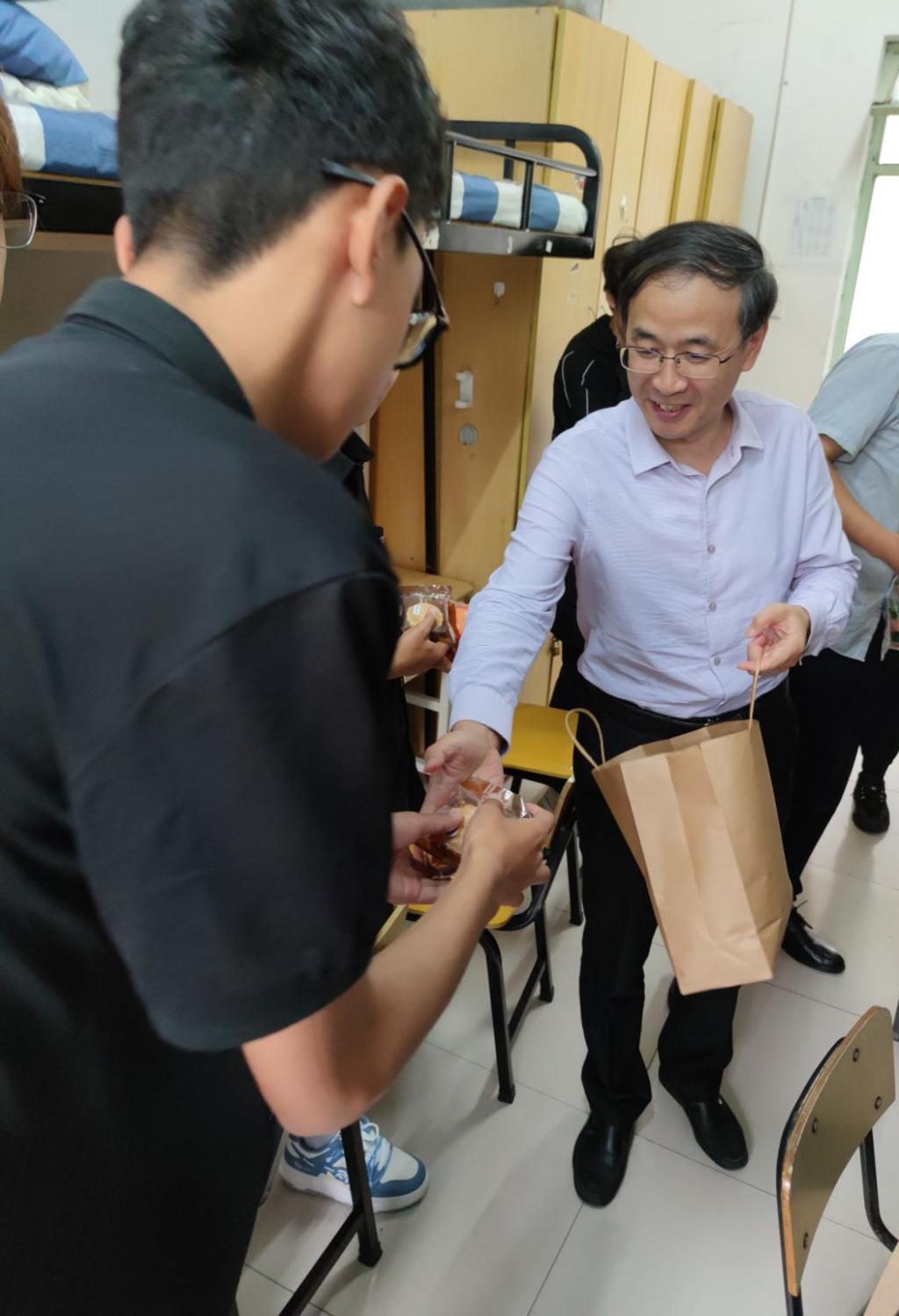 月饼分发现场,常象春亲切地跟同学们讲,中秋佳节,学院特意给留校同学准备了月饼,让求学在外的学子能在中秋团圆的日子里,感受到学院的温暖。随后,常象春详细地了解同学们的假期安排、学习生活近况和大学规划,叮嘱同学们假期出行注意人身、财产安全。