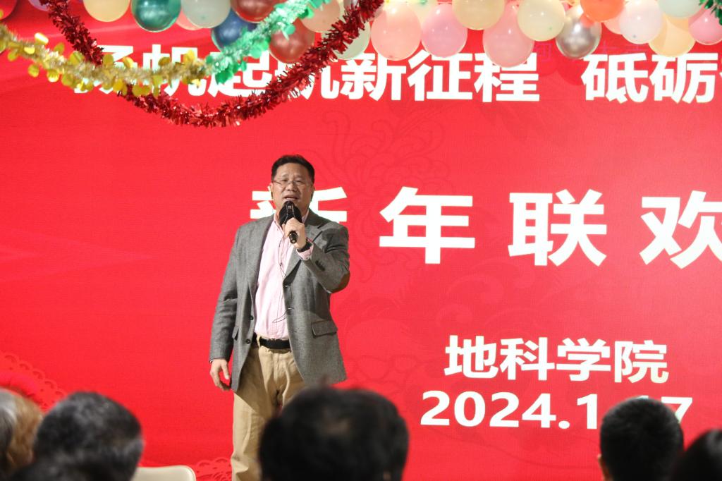学院党委书记高慧首先发表致辞,她总结回顾了2023年学院取得的各项成绩,肯定了学院教职工的辛勤付出,希望在新的一年里,地科院全体师生将继续砥砺奋进,扬帆起航。