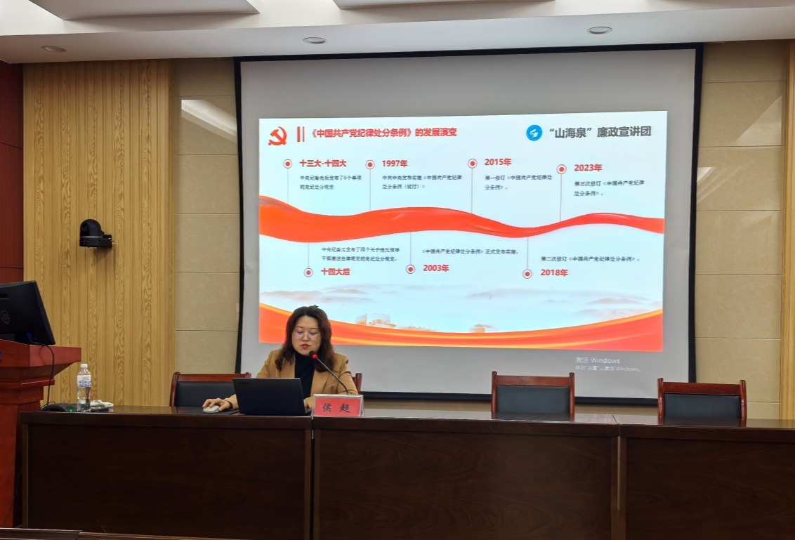 报告中,侯超老师以“坚持全面从严治党必须把纪律挺在前面”为主题,结合大家熟悉的及身边的触犯党纪的典型案例,从《条例》修订的背景和意义、《条例》修订的突出特点、《条例》修订内容及常见违纪问题剖析、《条例》在纪检工作中的使用等四个方面,对新修订的《条例》进行了全面详实地解读。侯超老师的报告通俗易懂,案例警示性强,受到与会人员的一致好评。