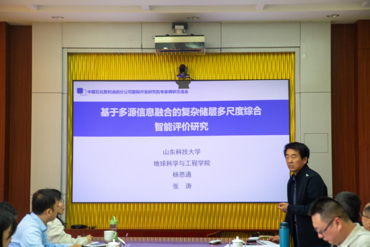 常象春首先对田同辉一行来院访问交流表示诚挚欢迎,并介绍了学院近年来发展的基本情况及取得的成绩;田同辉对我院近年来事业发展所取得的成绩给予了高度评价,同时介绍了胜利油田勘探开发研究院的情况,并提出了此次学术交流和调研的主题。