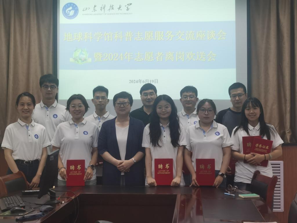 6月19日,地球科学馆举办科普志愿服务交流座谈会暨2024年志愿者离岗欢送会。金沙js4399首页党委书记高慧、副院长孟元库、地球科学馆馆长王倩及全体科普志愿者参加座谈。