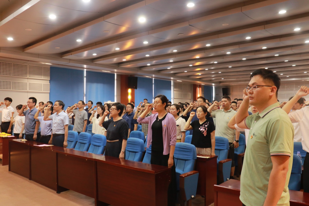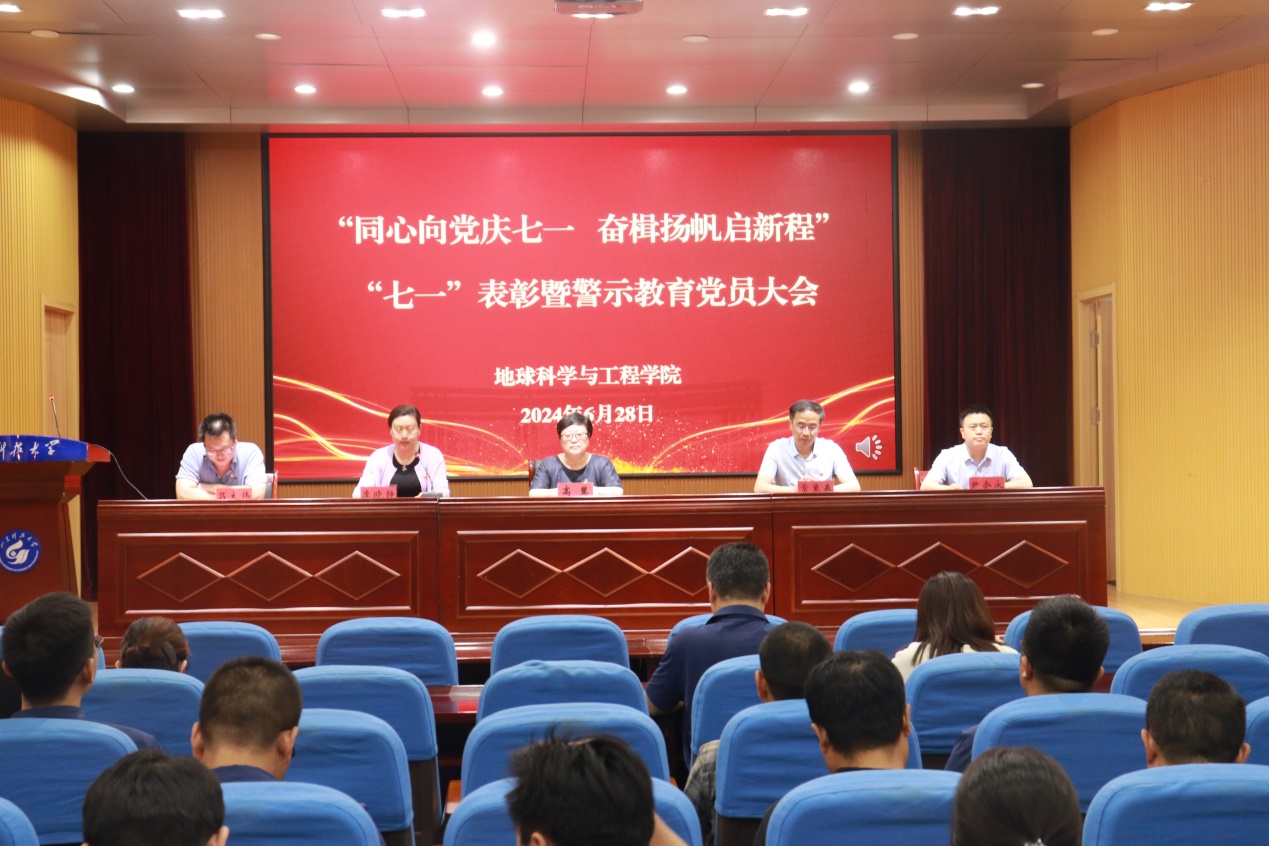 6月28日,金沙js4399首页召开“同心向党庆七一•奋楫扬帆启新程”“七一”表彰暨警示教育党员大会,庆祝中国共产党成立103周年,推进党纪学习教育走深走实。学院领导班子成员、全体师生党员参加大会,大会由学院党委副书记兼副院长李晓静主持。