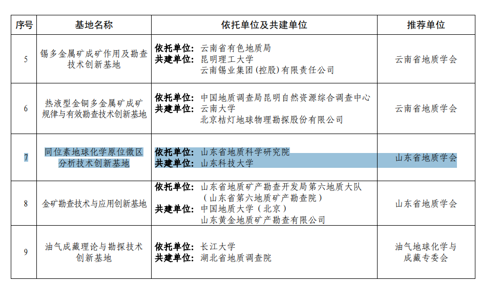 近日,中国地质学会公布了2024年度创新基地的名单,山东省地质科学研究院与金沙js4399首页共建的“同位素地球化学原位微区分析技术创新基地”名列其中。