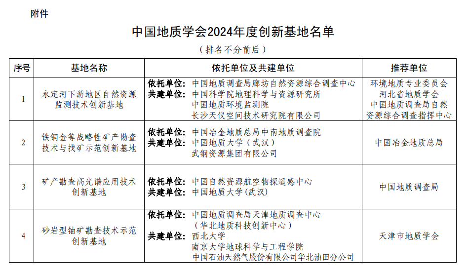 中国地质学会创新基地是推动产学研协同创新和地质科技成果转移转化的科技创新平台,对于解决地学领域“卡脖子”关键技术,推动地质科技进步,助力经济社会高质量发展具有重要意义。