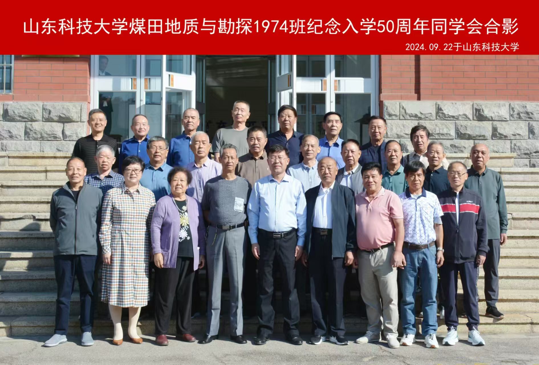 风霜雪雨五十载,同窗共读情谊深。9月22日,煤田地质与勘探1974班22位同学从五湖四海重返山东科技大学泰安校园,一同回首大学青春记忆和青春往事。泰安校区党委常务副书记吴正龙、学院党委书记高慧和任课教师代表姜军、莫德鼒应邀出席入学50周年同学会。会议由煤田地质与勘探1974班团支书郭达高主持。