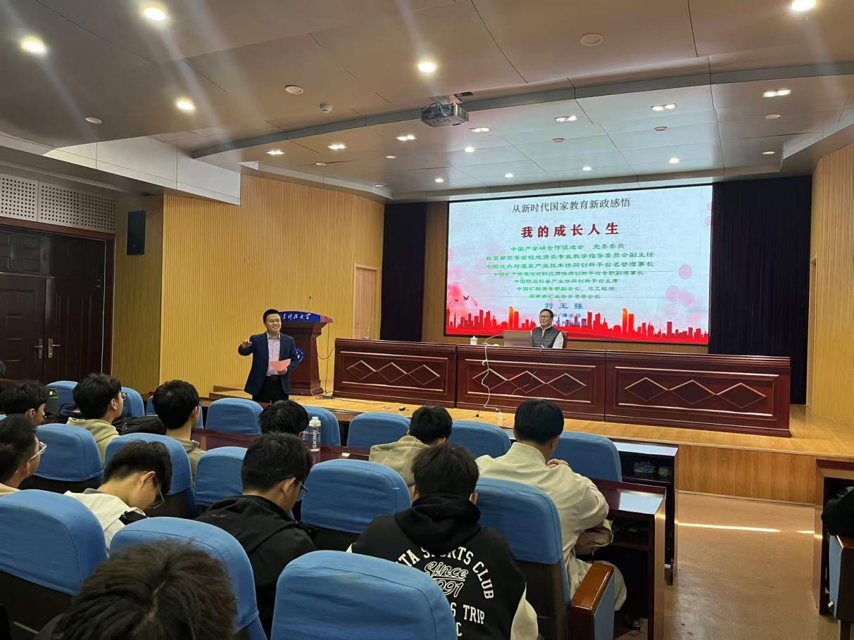 10月23日,中国产学研合作促进会党委委员、教育部高等学校地质类专业教学指导委员会副主任刘玉强教授级高级工程师在J6-434报告厅为金沙js4399首页的新生们做《我的成长人生》报告,副院长尹会永主持。