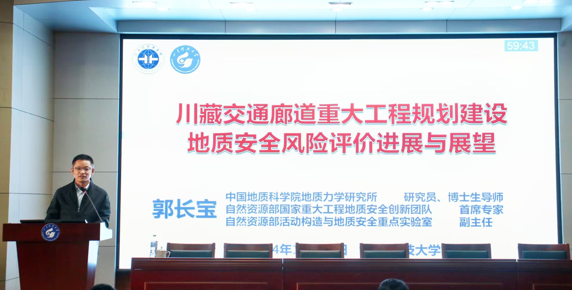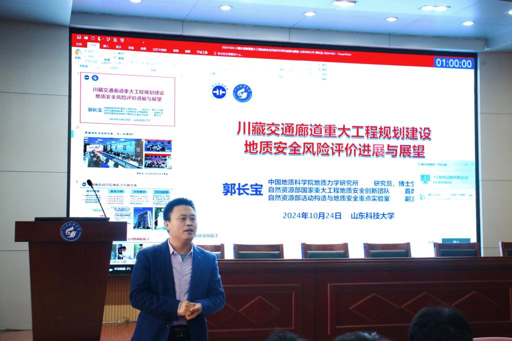 近日,金沙js4399首页在J6-433报告厅承办学校2024年第86期“名家讲坛”,中国地质科学院地质力学研究所郭长宝研究员作“川藏交通廊道重大工程规划建设地质安全风险评价进展与展望”的学术报告。副院长尹会永主持,学院部分教师及研究生、本科生参加了报告会。