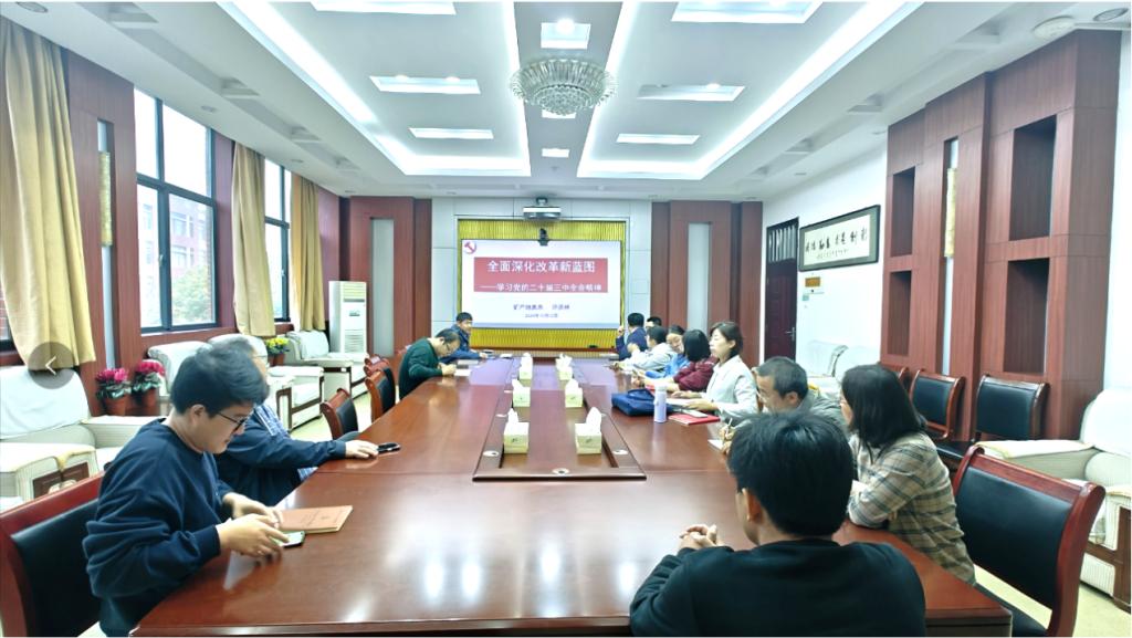 2024年11月12日下午,矿产地质系党支部举办学习贯彻党的二十届三中全会精神专题党课。本次党课由支部书记许庆林担任主讲,矿产地质系党支部全体党员教师参加。