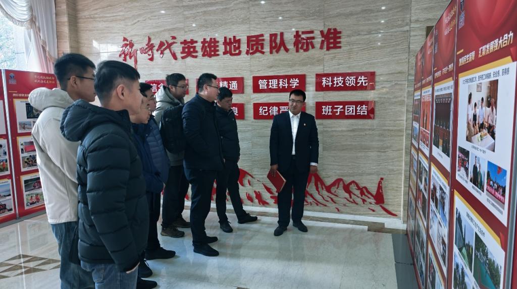 走进六队科技大厦一楼大厅,映入眼帘的是习近平总书记给地质六队全体工作者的回信,吕大炜一行首先学习了习近平总书记的回信,重温了总书记对地质工作者的深切关怀。随后,参观了六队队史馆,深入了解六队的发展变迁。馆内一件件野外勘探的工具、一张张斗志昂扬的照片、一座座写满战绩和荣誉的奖杯,默默诉说着这支英雄地质队艰苦奋斗、为国找矿的光辉业绩。