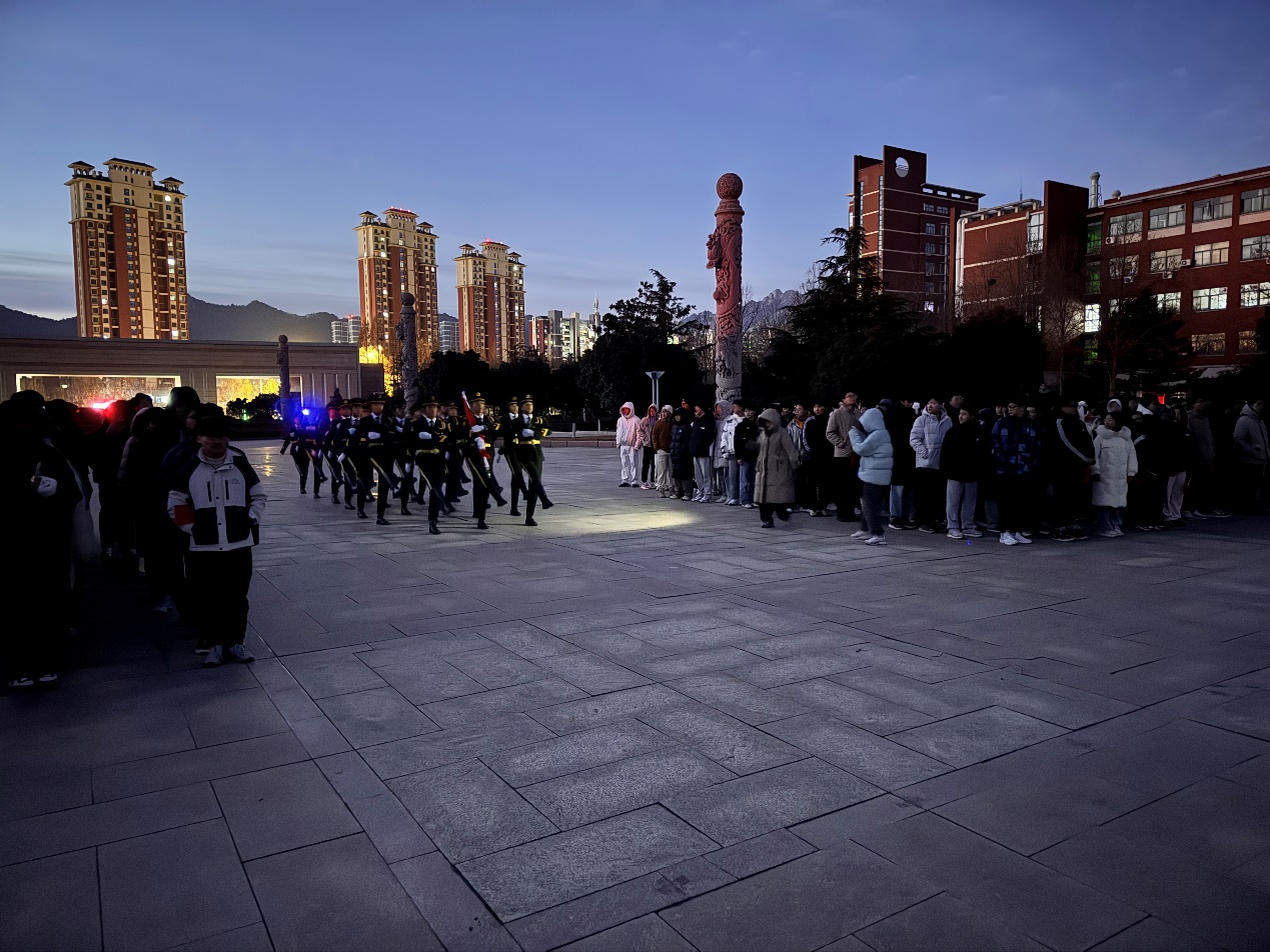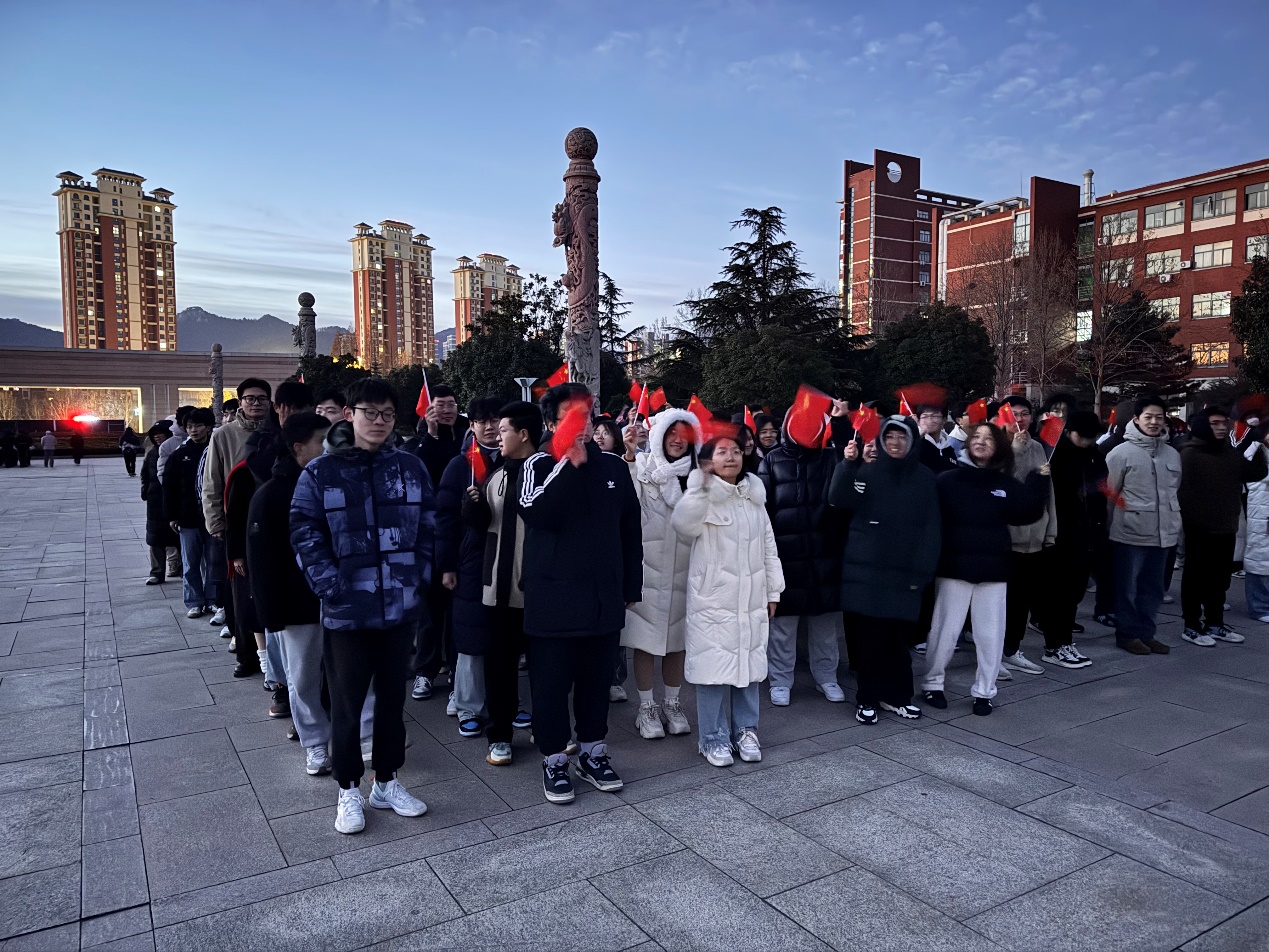 12月23日清晨,金沙js4399首页在泰山广场举行“国旗下的地质梦”主题升旗仪式。金沙js4399首页团委书记王文鑫、辅导员老师及2024级全体本科生、学院青马班全体学员参加此次升旗仪式。