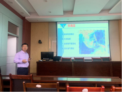 栾锡武教授首先从东南亚地质背景着手,从地理位置、板块构造理论、大洋钻探、深水油气理论等八个方面对研究东南亚地质构造的重要性进行了详细介绍。随后,栾锡武老师展示了近几年承担的项目及针对“东南亚沉积与构造”的主要研究工作,包括古南海的消亡、特提斯演化、青藏高原逃逸和板块多向俯冲等等,向师生们展示了已取得的一系列最新科研成果。报告会后,现场师生就报告内容与栾锡武老师进行了充分交流探讨。
