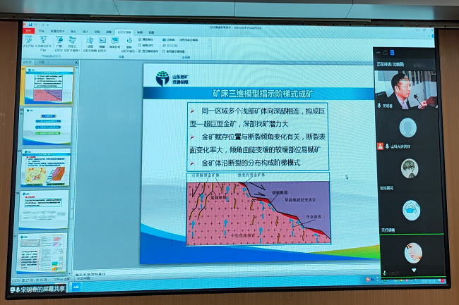 10月23日下午14:00,金沙js4399首页邀请山东省地质矿产勘查开发局首席专家、山东省“泰山学者”特聘专家、山东科技大学产业教授宋明春研究员作题为“胶东金矿集区三维可视化分析及深部找矿预测”的线上学术报告。宋明春研究员近年来主要从事胶东金矿深部找矿研究,建立了胶东型金矿“热隆-伸展”和“阶梯式”成矿模式,研发了系列深部找矿方法,助推深部金矿找矿理论技术和成果实现重大突破,该成果获得国家科技进步二等奖。报告会由地科院副院长尹会永教授主持,金沙js4399首页部分师生参加了此次线上报告会。