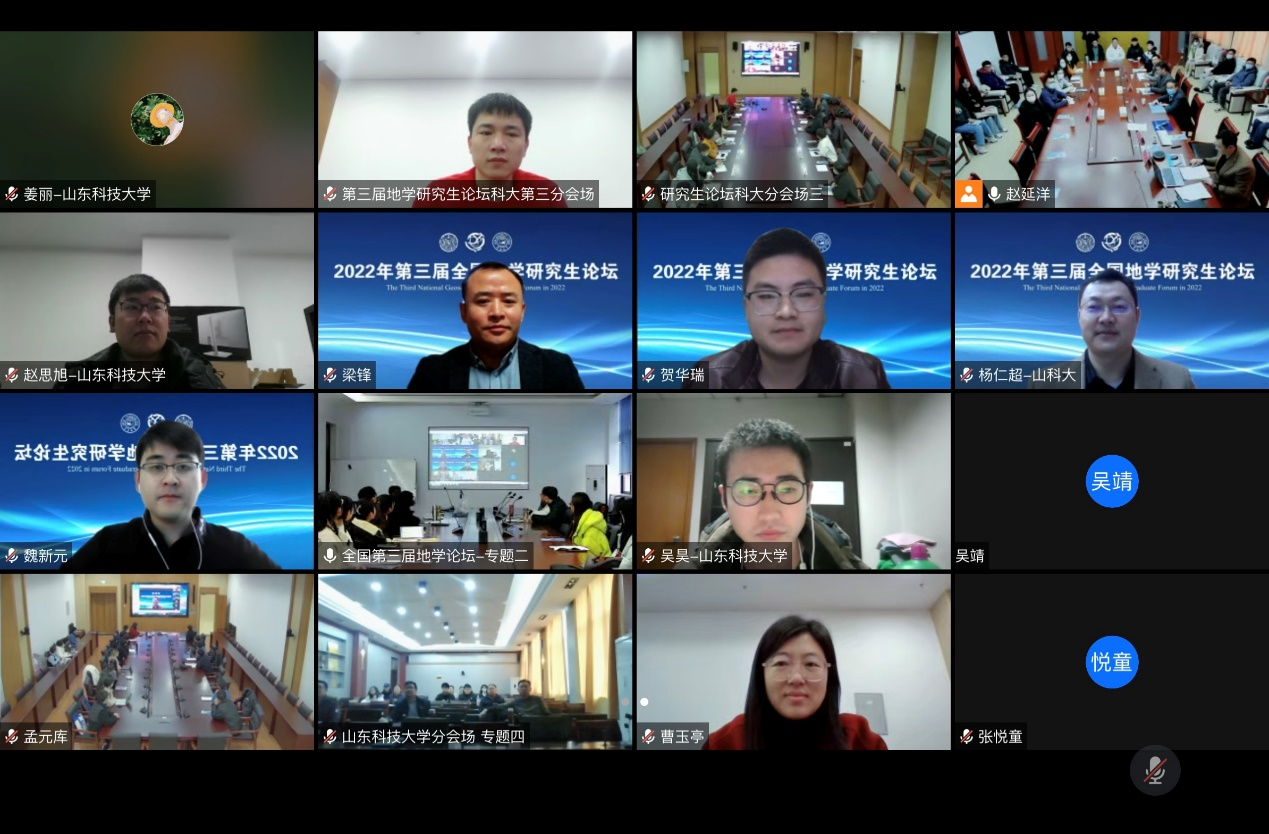 山东科技大学分会场于12月4日进行。分会场开幕式由我院副院长杨仁超教授主持,中国地质学会青年工作委员会秘书长梁锋研究员和山东科技大学研究生院院长韩作振教授分别应邀致辞,学院25位评委老师、广大师生及地质同仁参加分会场开幕式,线上线下300余人参加了本届论坛分会场的学术活动。