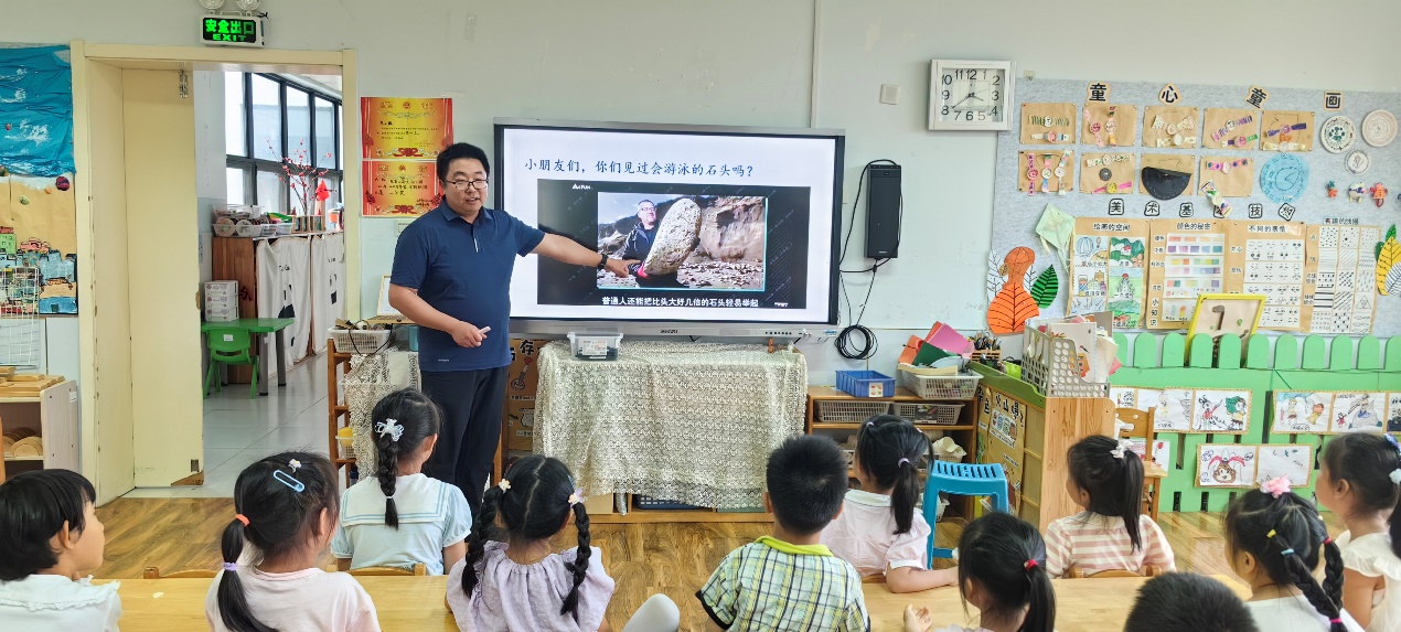 “小朋友们,你们见过会游泳的石头吗?”、“你们知道吗?石头中埋了好多宝贝呀!”……6月14日,我院水文与地质工程系教师张伟杰副教授走进山东科技大学幼儿园,为大二班的小朋友们开展题为《神奇的石头》科普讲座。