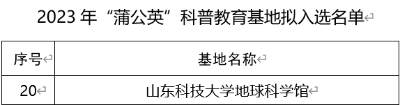 近期,青岛市科学技术协会公布了2023年“蒲公英”科普教育基地名单,“山东科技大学地球科学馆”成功入选。